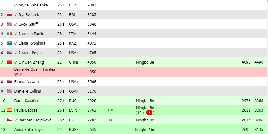 Oui. Mais Barbora Krejcikova, qui a décidé de ne plus gagner un match depuis son sacre à Wimbledon en sera du voyage. En qualité de gagnante d’un Majeur cette année et de sa présence assurée dans le top 20.